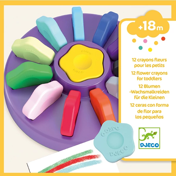 Tartalom: 12 db virág alakú zsírkréta, 12-féle színben